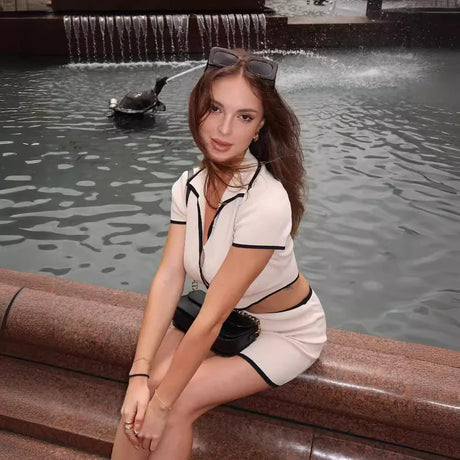 Trim Knitted Cardigan Sheath Skirt Outfit