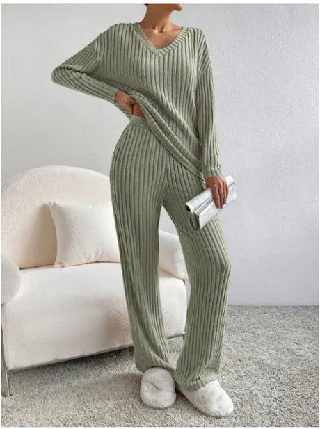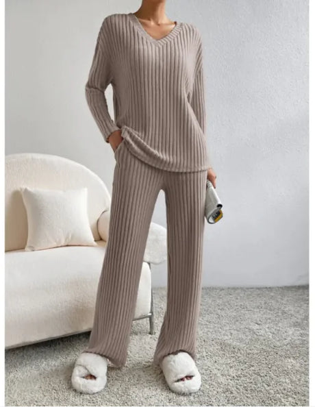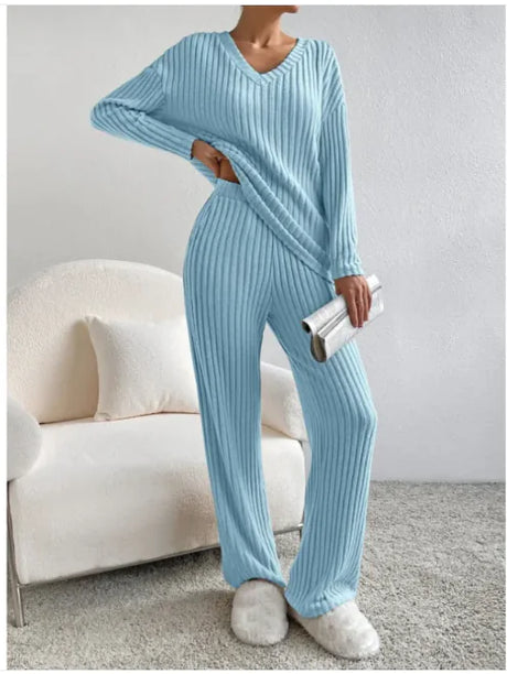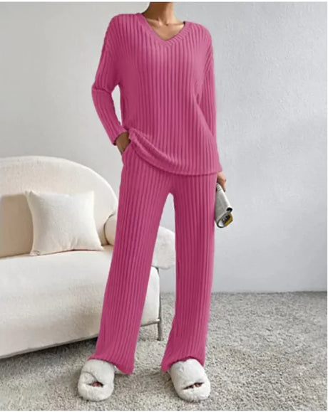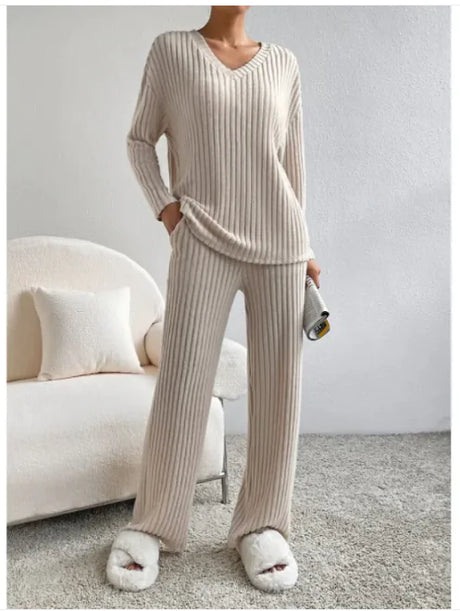 V-Neck Striped Suit & Straight-Leg Pants Set