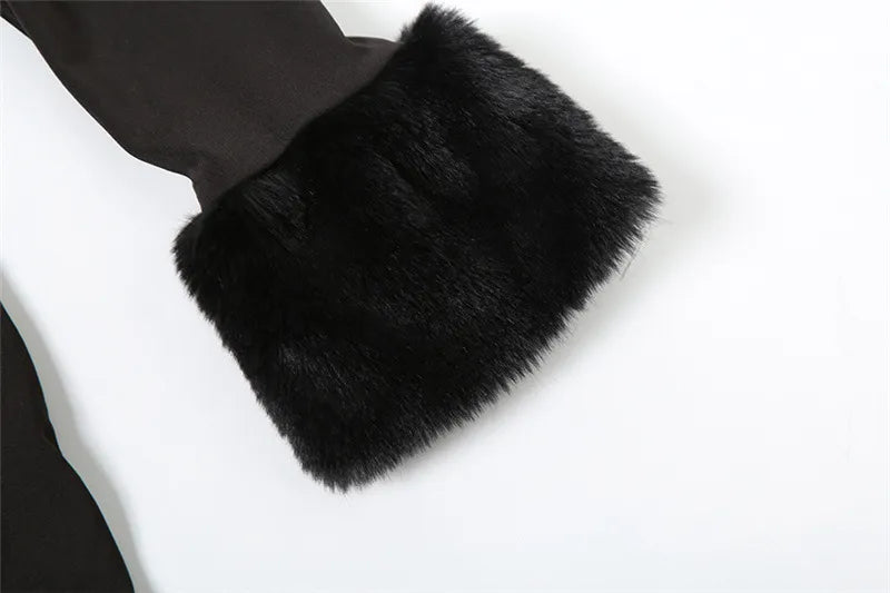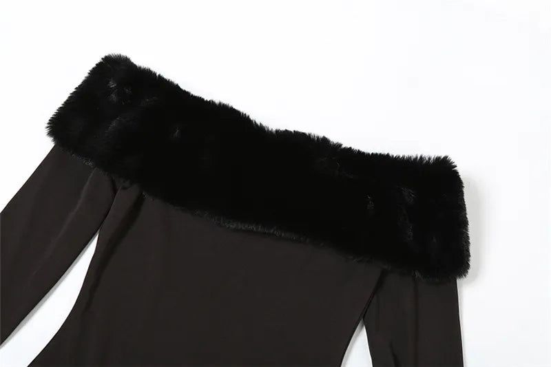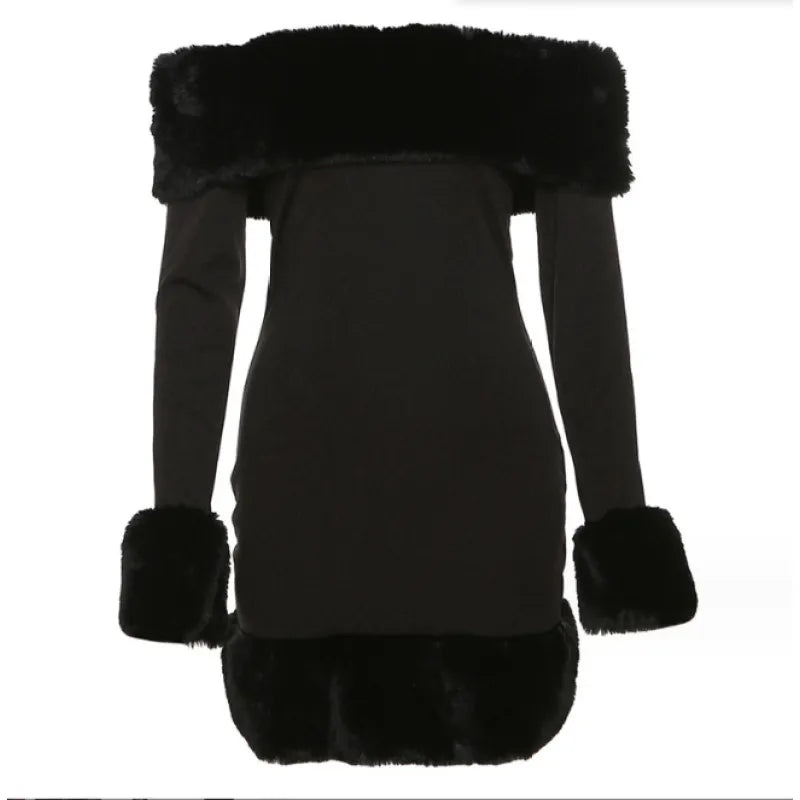 Step out in style with this stunning off-shoulder fur collar dress, perfect for any occasion!