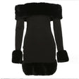 Fur Collar Long Sleeve Off Shoulder Dress