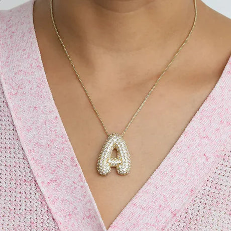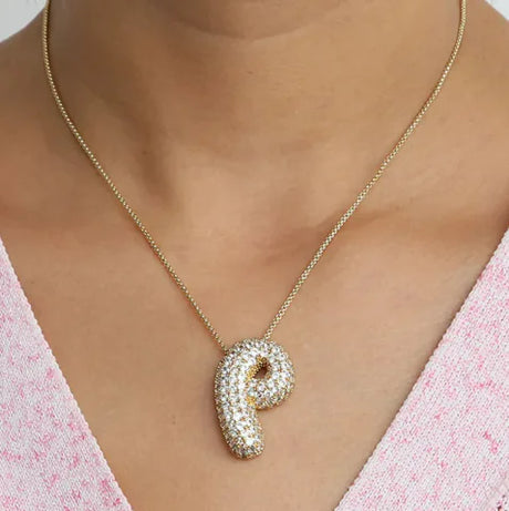 Brass Zircon Bubble Letter Necklace