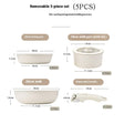 - 5-Piece Set: A compact and efficient set, including a milk pot, two frying pans, and a stewing pan with removable handles.