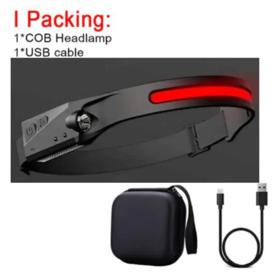 This COB LED induction headlamp offers powerful, hands-free lighting for outdoor activities like camping, hunting, or riding. Featuring a USB rechargeable battery, waterproof design, and all-perspective adjustable beam, it ensures reliable lighting in any environment.