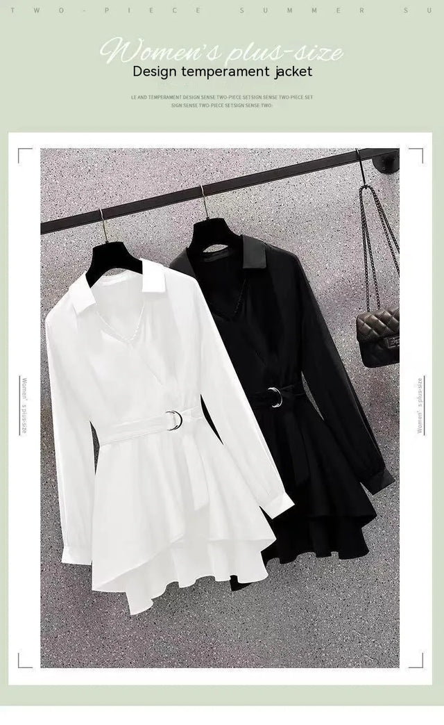 Exude timeless elegance with our tailored suit dress. This sophisticated piece features a flattering skirt and a built-in belt to accentuate your waistline. Perfect for work, special occasions, or evening events, this versatile dress effortlessly transitions from day to night.