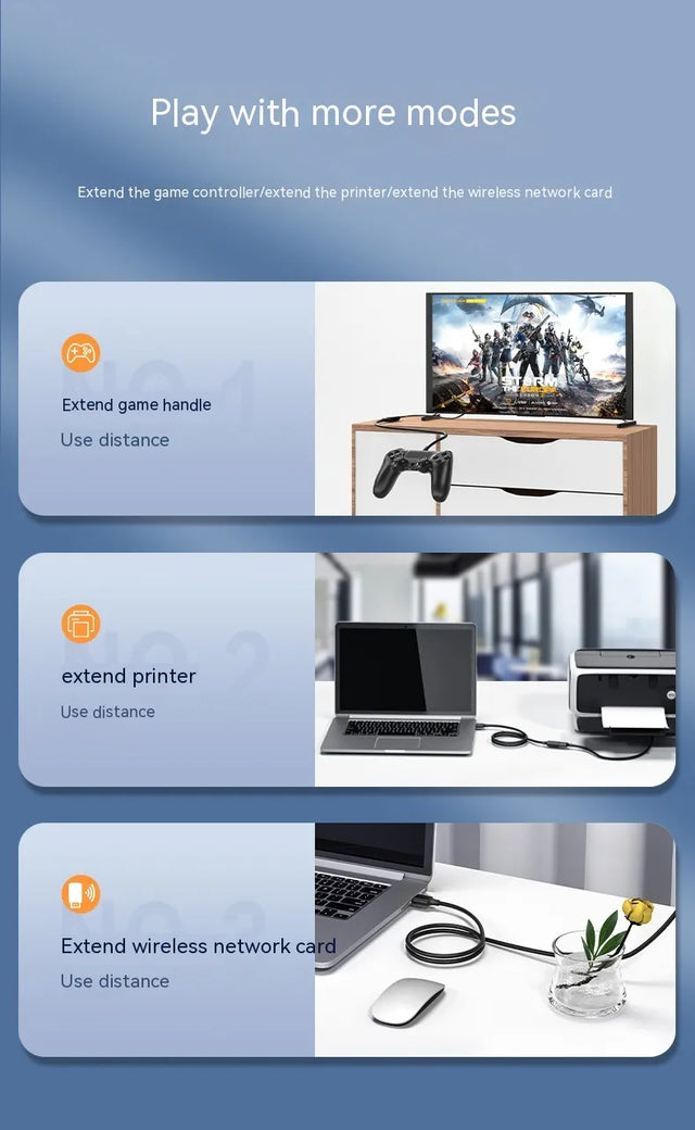 The USB Extension Male to Female Data Cable is a practical and reliable solution for extending the reach of your USB devices. Designed with high-quality materials, this cable ensures stable data transmission and efficient charging, making it ideal for a variety of applications, including connecting peripherals like printers, keyboards, or flash drives to your computer.