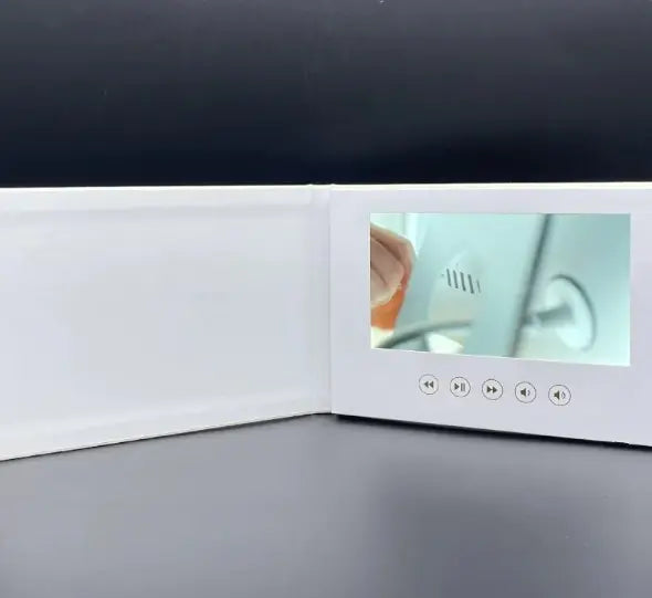 Video Greeting Card: A greeting card with an embedded screen, allowing personalized videos to be played for recipients, combining the sentiment of a traditional card with digital media.